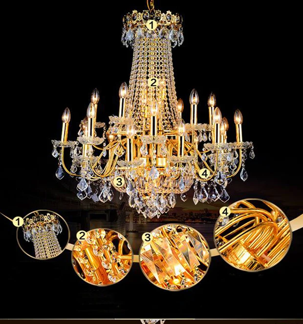 - Phong cách châu Âu cổ điển: Đèn chùm pha lê tay nến là sự tái hiện hoàn hảo vẻ đẹp của những cung điện nguy nga, với các đường cong mềm mại, kiểu dáng bề thế, sang trọng.